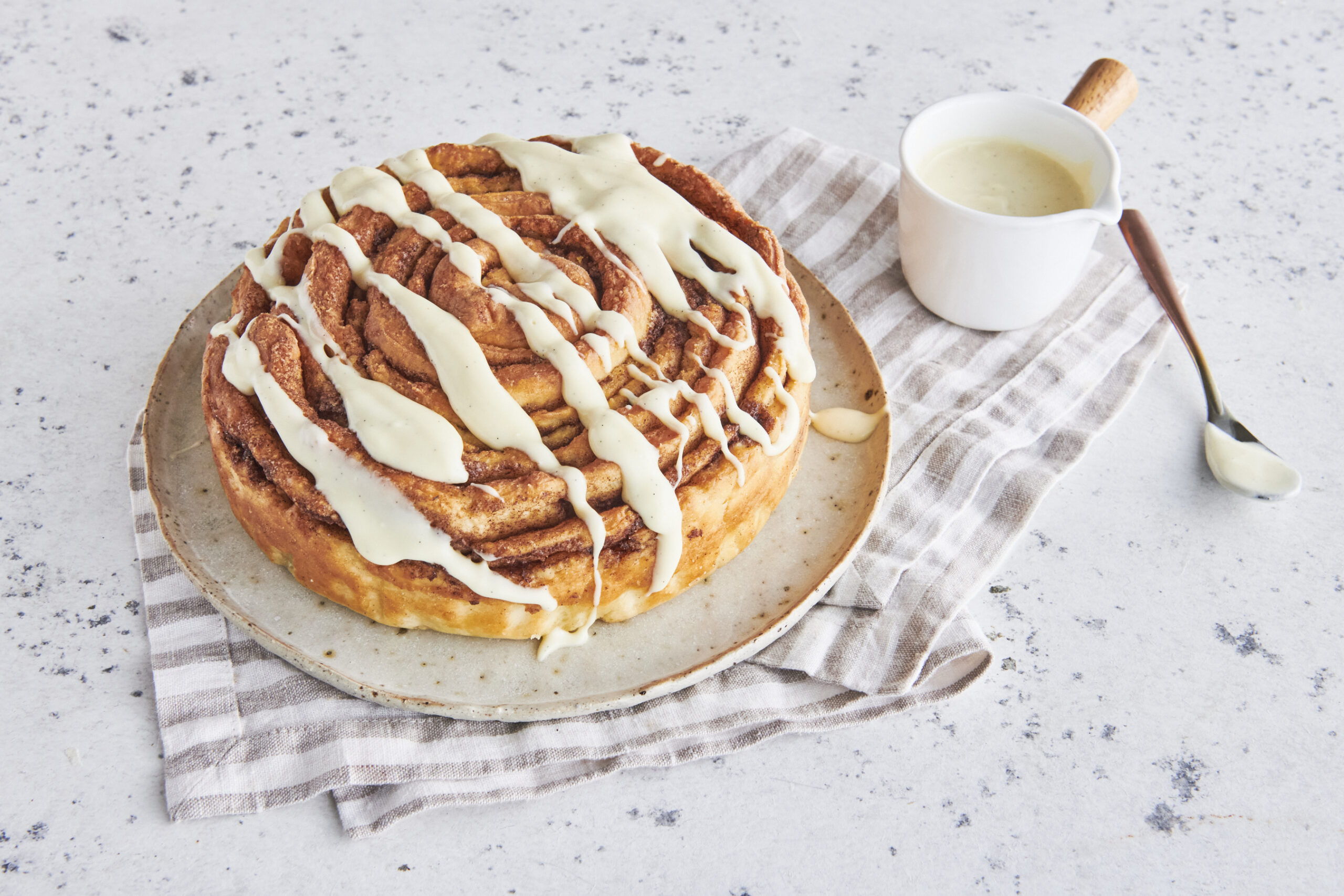 Air fry at 160°C for 20-25 minutes, check the scroll halfway through the cooking time and once the top is golden, cover with foil for the remainder of the cook. Set aside to cool for a few minutes before frosting.