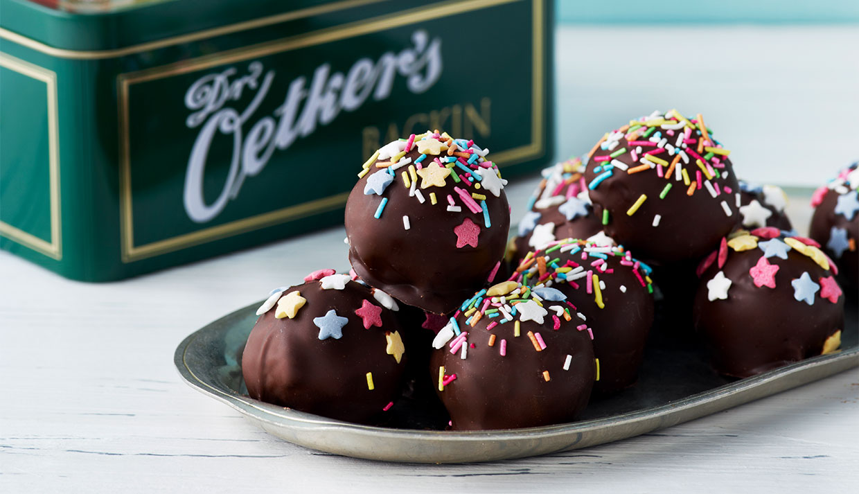 To decorate, chop chocolate into pieces and place in a heat proof bowl. Melt over a water bath or in microwave in 30 second intervals, stirring in between until all chocolate is melted. Pour melted chocolate over coconut balls then place on a tray lined with baking paper. Decorate with sugar strands and sugar stars before chocolate hardens.