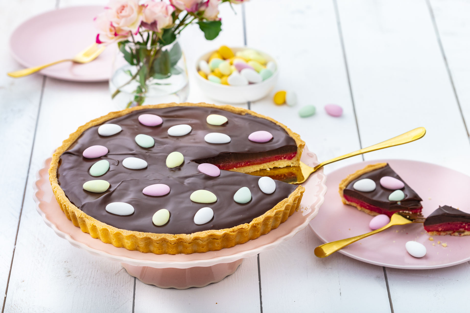 Place the chocolate eggs on top of the tart and press lightly. Place the tart in the fridge to chill until set. Tip: The tart will keep in the fridge for around 2 days.